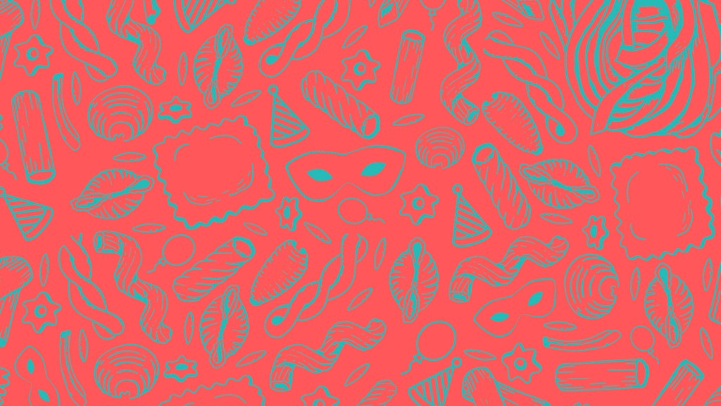 On Photoshop I rearranged pasta vectors and created my own party themed drawings to build a new theme around the brand identity. The colours are purposefully dark in order to bring emphasis to the logo and text which would be layered on top.